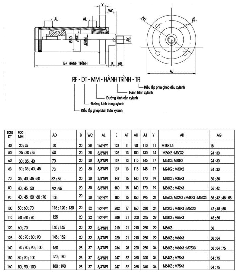 - Bản vẽ và thông số kích thước xy lanh kiểu lắp RF-TR